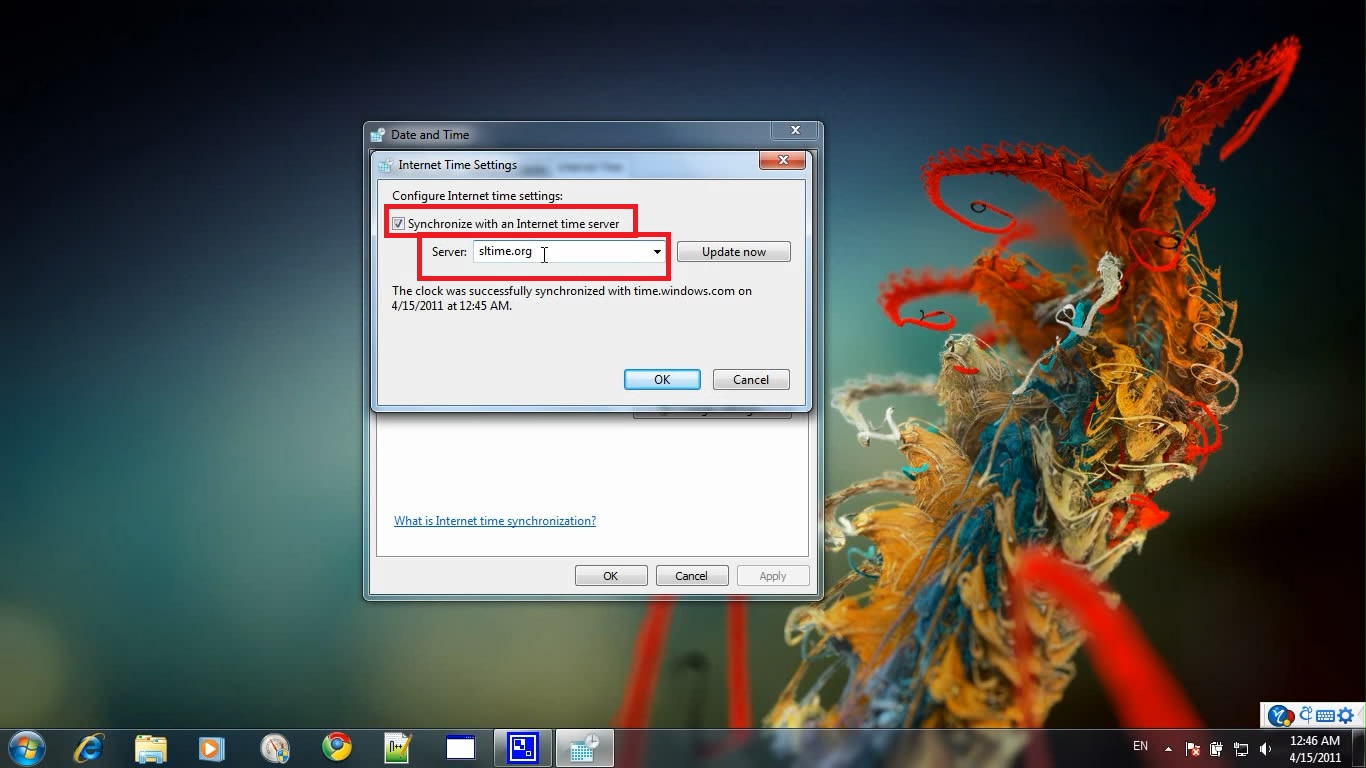 දැන් සියලු වින්ඩෝ OK කර ඉවත් වෙන්න. ඉහත පැවසූ Synchronize with an Internet Server ටික් කර ඇතිනම් වින්ඩෝස් මගින් ස්වයංක්රියව යාවත්කාලීන කරගන්නව.